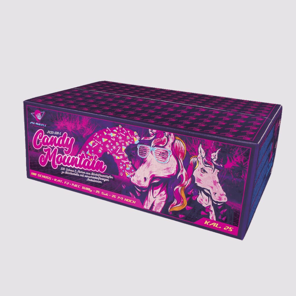 n nCompound met 100 schoten van 25mm en ongeveer 35 seconden brandtijd!! n n Albert Fireworks Candy Mountain 100 Shots Goedkoop vuurwerk kopen bij Vuurwerkwinkel Ede