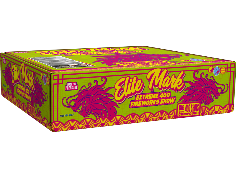 Extreme 400 n nKruitgewicht 1981 Gram nTube diameter 20 nBrandtijd 120 Seconden nHoogte 25 m. – 30 m.