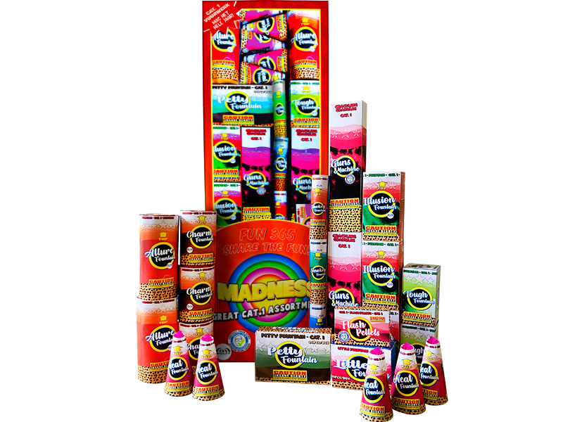 Madness nDit is echt gekkenwerk..XL box vol met categorie 1 vuurwerk. Genoeg om te delen! n nKruitgewicht 275 Gram nTube diameter – nBrandtijd – Seconden nHoogte – Madness Goedkoop vuurwerk kopen bij Vuurwerkwinkel Ede